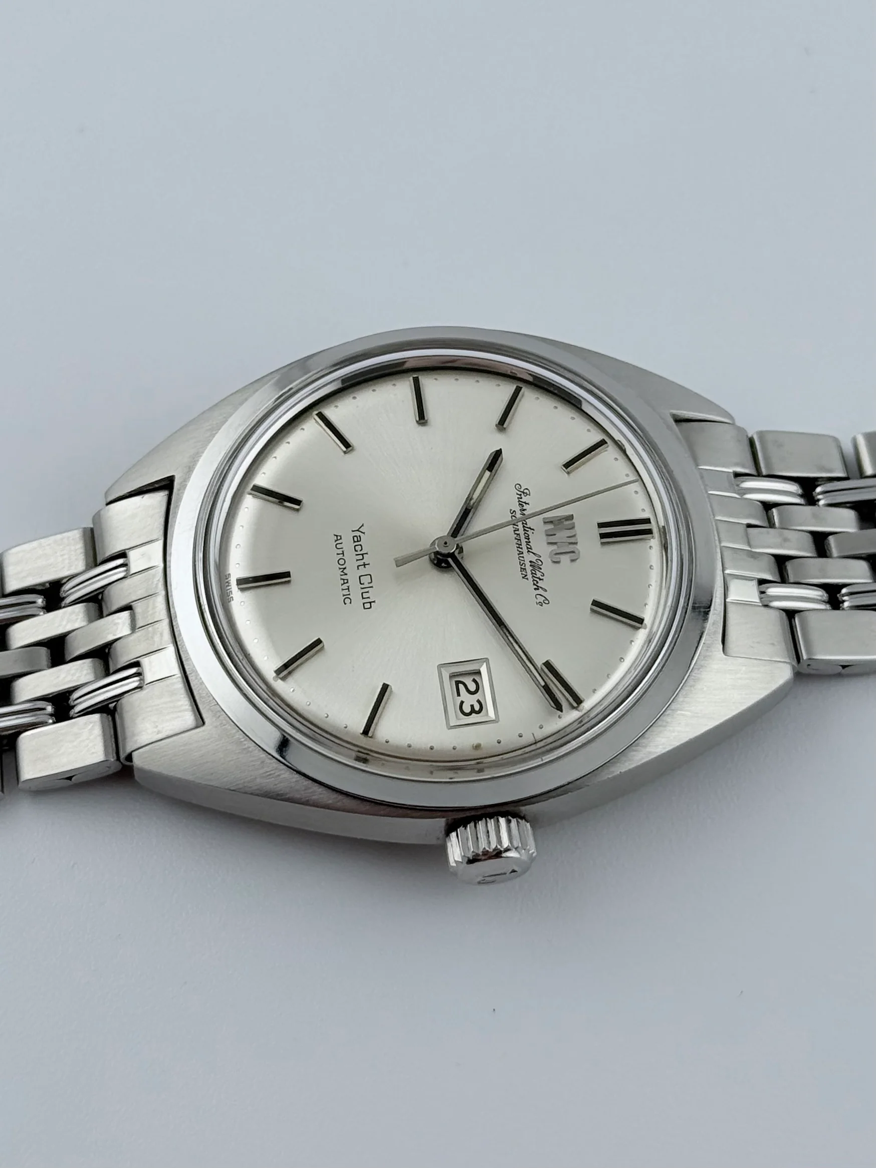 This is a truly incredible IWC Yacht Club edition with a timeless design from the early 1970s featuring the stylish silver sunburst dial with baton indices complemented by a date complication encased in a stainless steel case which also features the IWC fish crown. This watch is in fantastic and well preserved condition both cosmetically and mechanically, working perfectly and keeping excellent time. It is ready to be enjoyed for years to come by its new owner!Â