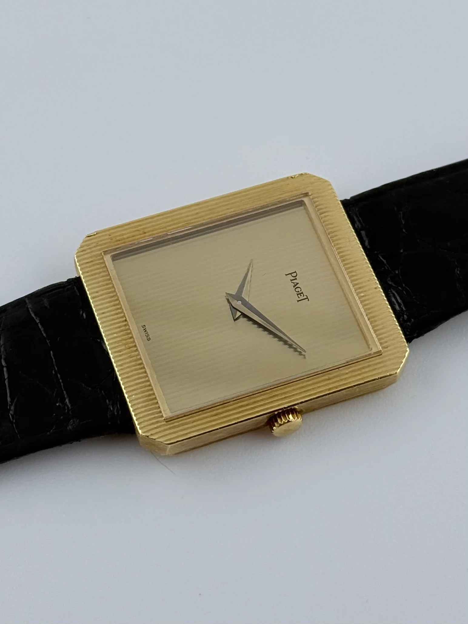 This is a stunning vintage Piaget tank which features an elegant tapestry case and dial. This watch exudes sophistication, beauty and style. This timepiece is in fantastic condition, hardly showing any signs of age whatsoever. The Piaget Quartz movement is working perfectly and keeping excellent time.Â