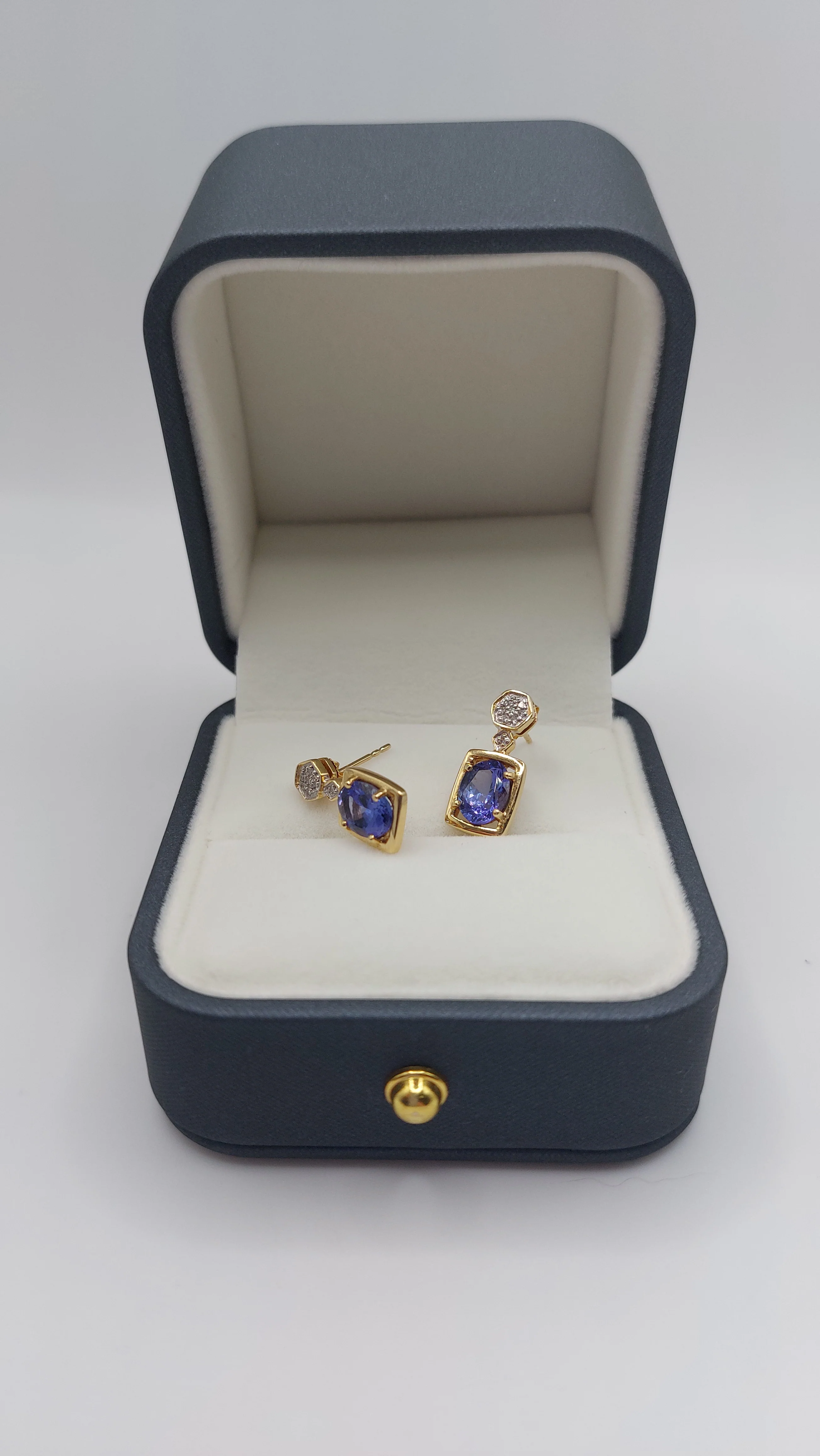 Tanzanite and Diamond 18ct Gold Fixed Drop Earings